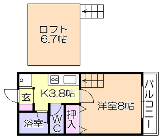 BS / 給湯 / ガスコンロ設置可 / シャワー / バス・トイレ別 温水洗浄便座 / 室内洗濯機置き場 / インターネット無料 / フローリング / TVモニタホン バルコニー / 2階以上 / 南向き / ロフト / 靴箱 エアコン |