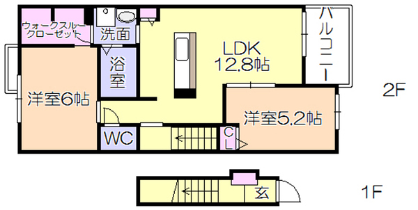 | 構造・階数 | ツーバイフォー 2階建 2階 部分 | 現況 | 2月下旬退去予定 |