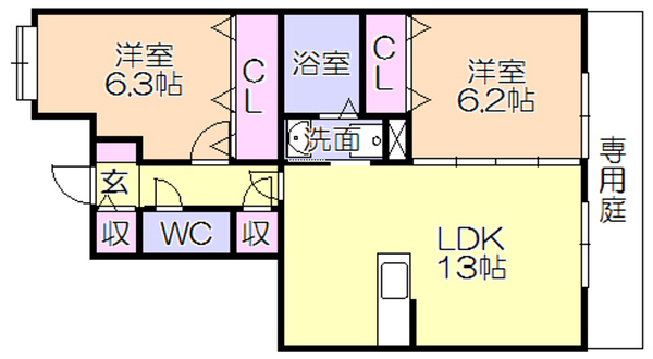 オートロック!専用庭付♪角部屋6.4 万円
